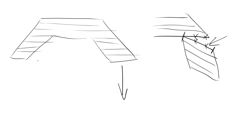 hopefully the frame holds up in practice, fortunately to stress test it i can use a short extrusion, and some random 3mm thick material to substitute the plexiglass pentagon. i only need to more or less eyeball it to get an idea of how it all fits together, based on the angle i can aproximate the distribution force (thanks engineering statics) in my head and determine if the printed frame is up to the task or not. Certain issues can likely be resolved if i rotate the frame in a weird way to change how the FDM layering fails. top to bottom with the layers horizontal it makes the layers prone to snapping under 90 degree angle force as illustrated below